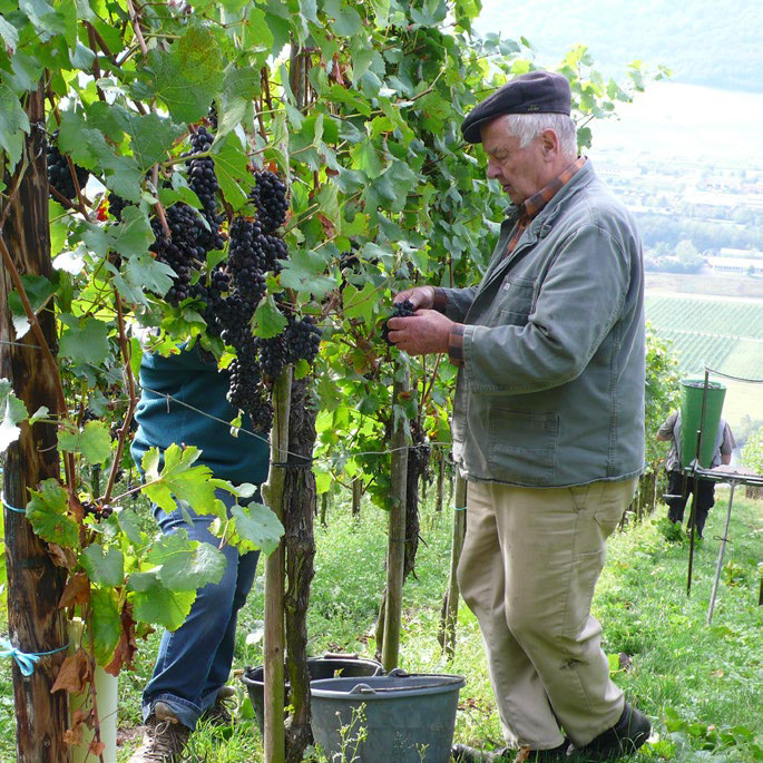 ”Helt stenet og ufrugtbar jord!” Mangt en vandrer må have troet det, da han gik langs vores vinmarkers stier. Men netop denne jord er grundlaget for vores usædvanlige vine. Skifergrunden er i stand til at opbevare varme om dagen og frigive det igen om natten. Dette skaber et unikt mikroklima i vores vinmarker. Derudover favoriserer skråningen solskin over gennemsnittet på vores bladområder. Det perfekte klima til dyrkning af vores mousserende mineralske hvidvine og frugtagtige, elegante rødvine!